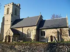 The village has two public houses: the Fox, built in 1870[17][18] and the Three Horseshoes, dating from the late eighteenth century.[19] The village also has a village shop, which incorporates a Post Office, and a large pond. The parish church of All Saints has a tower with clocks on two sides; two sides are blank, supposedly so that farm labourers would not be able to tell when to leave work. This continues to be an active parish church in the village. Its daughter church of St Paul's, Letchworth became a separate parish church in 1963.