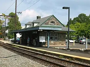 Willow Grove station is a station on the SEPTA Warminster Line, located in Willow Grove, Pennsylvania. The station, located on York Road (PA 611) and Davisville Roads, features a 190-space parking lot. Willow Grove station was originally built in 1886 by the Reading Railroad, and replaced by a stone structure built in 1939. The station house was closed in 1965, but continues to serve passengers.[3]