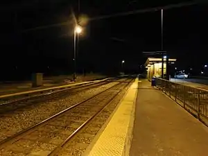 Willow Springs is a station on Metra's Heritage Corridor in Willow Springs, Illinois. The station is 17.5 miles (28.2 km) away from Union Station, the northern terminus of the line.[2] In Metra's zone-based fare system, Willow Springs is in zone D. As of 2018, Willow Springs is the 170th busiest of Metra's 236 non-downtown stations, with an average of 148 weekday boardings.[1]