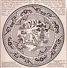 "The Story of Wong Ts'in and the Willow Plate Embellishment" is narrated by the storyteller Kai Lung in Ernest Bramah's 1922 novel Kai Lung's Golden Hours. This short story, created by Bramah, is quite different from the standard romantic fable outlined above.