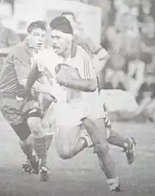 Despite overpowering pack called the Mammoths of Grenoble[1] his club tilts on the score of 14–11.[2] A try of Olivier Brouzet is denied to Grenoble[3] and the decisive try by Gary Whetton was awarded by the referee, Daniel Salles, when in fact the defender Franck Hueber from Grenoble touched down the ball first in his try zone. This error gave the title to Castres.[4] Salles admitted the error 13 years later.[5][6] .[7] Jacques Fouroux the coach of FC Grenoble in conflict with the Federation and who was already suspicious before the match of the referee[8] cry out conspiracy.[9]