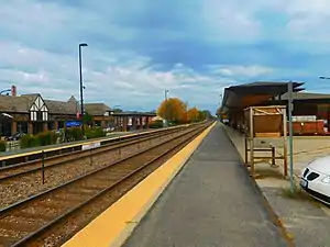 Wilmette is the name of a commuter railroad station in Wilmette, Illinois that is served by Metra's Union Pacific North Line. Trains go south to Ogilvie Transportation Center and as far north as Kenosha, Wisconsin. Travel time to Ogilvie is 31 minutes on local trains, and as little as 27 minutes on morning inbound trains and 22 minutes on one afternoon inbound train. In Metra's zone-based fare system, Wilmette is in zone C. As of 2018, Wilmette was the 18th busiest of Metra's 236 non-downtown stations, with an average of 1,653 weekday boardings.[1]