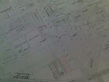 - Legend: 1) New Concert Inn, 2) Oxford Road Inn, 3) Tulloghgorum Vaults, Outline) Grand Central site at no. 80 (houses)