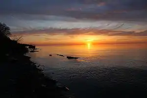 Sunset Island is not an island but actually two islands connected by a narrow spit of land. This spit, between the smaller western island and its larger sister to the east, has on occasion been washed away by lake storms isolating East Sunset Island. The western smaller island is connected to the mainland and accessible through Tuscarora State Park by a path, hence boat access is the primary means of access. In recent times, some lakeside homes had to be moved inward because of erosion. In the late 1800s and early 1900s there were some hotels on the island which have long since been lost to fire, storms and time".