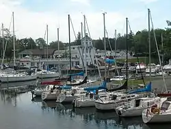 The village is located on the south shore of Lake Ontario. On a clear day, it is possible to see the skyscrapers of Toronto across the lake in Canada, including the CN Tower, just over 30 miles away.