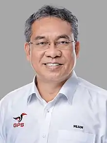 Wilson Nyabong Ijang (born 2 January 1959) is a Malaysian politician. He is the member of Sarawak State Legislative Assembly for Pelagus constituency in Sarawak, Malaysia since 2016 representing Parti Rakyat Sarawak (PRS), then was part of Barisan Nasional (BN) and now Sarawak Parties Alliance (GPS). Following the fall of BN in the 2018 General Election and in the aftermath of meeting between all Sarawak-based BN coalition parties including PRS on 12 June 2018, had decided to leave the coalition to form a new Sarawak-based coalition of GPS.[1] He was first elected after winning a majority at DUN Pelagus in the 11th Sarawak State Election 2016.[2] He is now in his second term after winning a majority in the 12th Sarawak State Election 2021.[3] He is currently a supreme council member of local ruling party, PRS.