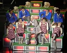 "Wind It Up" met similar success in Europe, reaching number five on the European Hot 100 Singles.[23] The single debuted at number eight on the UK Singles Chart, selling 10,381 downloads in its first week.[24] The following week, it rose to number three (behind Take That's "Patience" and Cliff Richard's "21st Century Christmas") with 17,706 copies sold,[25] earning Stefani her second highest-peaking single in the United Kingdom after "The Sweet Escape".[26] It had less success across the continent, reaching the top 10 in Belgium, the Czech Republic, Finland, Ireland, Italy, the Netherlands, and Norway, and the top 20 in Austria, France, Sweden, and Switzerland.[27][28]