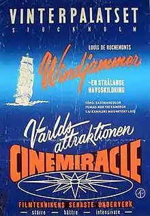Windjammer is a 1958 documentary film that recorded a 17,500-nautical-mile (32,400 km) voyage of the Norwegian sail training ship Christian Radich. Windjammer was produced by Louis de Rochemont and directed by Louis de Rochemont III. It was the only film to be shot in the widescreen Cinemiracle process, which came with a seven-track stereophonic soundtrack.