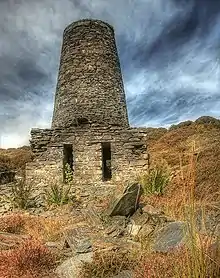 This small tower mill was built c.1902 to work an incline on a 2 ft (610 mm) gauge railway serving the slate quarry on South Barrule, Malew.[1] The tower survives.[2]