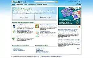 Live Connect (previously Messenger Connect, Live Services and Windows Live Dev) is a collection of APIs and common controls that allow developers to have a deeper control and offers access to the core Windows Live services and data through open and easily accessible application programming interfaces (APIs). At MIX07, Microsoft's Senior Architect Danny Thorpe described:[1]