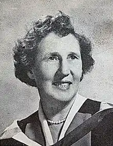 She was educated at the King Edward VI High School for Girls in Birmingham, and was awarded a B.Sc. (London) from Bedford College. Between 1914 and 1918 she worked at the Imperial College on synthetic drugs for the Navy and received a Diploma of Imperial College or the equivalent of an M.Sc. In 1918 she joined the Anti-Gas Department of the Ministry of Munitions under Edward Harrison, who died as a result of his experiments.[3] For the next 30 years from 1919 to 1949 she worked in the Chemistry Department of Battersea Polytechnic. During that period she married John Wright, a consultant on high-tension power lines, and raised a family of 3 daughters.