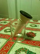 Winter ice cream (Hungarian: téli fagylalt [ˈteːli ˈfɒɟlɒlt] or téli fagyi [ˈteːli ˈfɒɟi]) is a Hungarian confectionery similar in appearance to ice cream in a cone, but traditionally having ganache or a similar kind of sweet cream filling with usually a chocolate-cocoa flavoring.[1][2] It gained popularity in the 1970s in communist Hungary,[3] being produced as a winter alternative to "summer" ice creams, which were deemed to be too cold for winter sweets.[2] Apart from grocery shops, it was frequently sold as part of the national railway's catering service (utasellátó).[3] The confectionery's popularity faded in the early 1990s, when, after the end of communism, foreign candy manufacturers and their products appeared on the Hungarian market.[3] However, along with some other snack foods and soft drinks of communist-era Hungary, winter ice cream garnered renewed interest in the late 2000s and 2010s.[4][3][5]