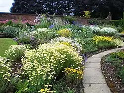 Winterbourne's seven-acre garden is Grade-II listed. Original Arts & Crafts features include the raised terrace, the broad curved stone steps leading to the lawn, the walled garden with its wavy 'crinkle-crankle' wall, the deep borders and the tunnel-shaped nut walk. The lean-to glasshouse in the walled garden is also original, as is the pleached lime walk (recently replanted). The garden was embellished in the 1930s with a pergola and a Japanese bridge and tea house. The glasshouses contain collections of orchids, alpines, carnivorous plants and cacti. Other highlights are the sunken rock garden, the geographical beds, the woodland walk and the collection of Anthemis, accredited with the National Plant Collection scheme. Visitors to Winterbourne also enjoy access to Edgbaston Pool, a Site of Special Scientific Interest.