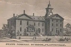 The university grew from the 1959 merger of two schools: Wisconsin State College, Platteville, and the Wisconsin Institute of Technology.[6] WSC–Platteville was founded in 1866 as Platteville Normal School, the first teacher preparation school in Wisconsin. It was renamed Platteville State Teachers College in 1926 and Wisconsin State College, Platteville in 1951. The Wisconsin Institute of Technology, founded in 1907 as the Wisconsin Mining Trade School, was founded to train technicians for the numerous mining operations around Platteville. It evolved into the first three-year program for mining engineers in the United States. It changed its name to the Wisconsin Institute of Technology in 1939. The merged school took the name Wisconsin State College and Institute of Technology. In 1966, along with Wisconsin's other state colleges, it was granted university status as Wisconsin State University–Platteville. It took its current name after the Wisconsin State University system merged with the University of Wisconsin in 1971.[6]