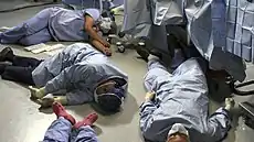![]() The physicians have fainted, due to a patient's toxic blood. | |