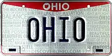 The Ohio Bureau of Motor Vehicles uses the motto frequently. As one of 46 phrases printed on the "Ohio Pride" license plate design introduced on April 15, 2013, the motto is located on two lines in the center-left of the baseplate, below "Inventors Hall of Fame" and above "Beautiful Ohio".[10] Driver's licenses and identification cards issued since 2019, including those that comply with Real ID requirements, incorporate the motto into a faint watermark on the obverse side.[11]