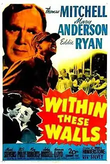 Within These Walls is a 1945 American drama film directed by H. Bruce Humberstone and written by Eugene Ling and Coles Trapnell. The film stars Thomas Mitchell, Mary Anderson, Edward Ryan, Mark Stevens, B.S. Pully and Roy Roberts.[1][2][3] The film was released on July 13, 1945, by 20th Century Fox.