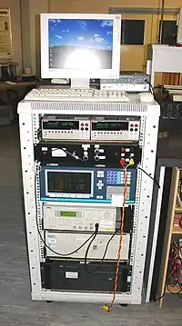 A 3 phase transformer tester is available for the characterisation of production transformers or simulated cores with a rating up to 15 kVA driven by either a constant voltage transformer or selected inverter drives through computer controlled variacs.