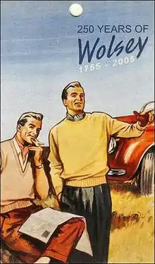Wolsey is a heritage British clothing brand founded in 1755, making it one of the oldest existing textile companies in the world. The brand sells men's clothing and accessories, including a range of knitwear, socks, underwear and scarves. The company holds a Royal Warrant and is based in Leicester, England, where it was originally established.[1] The company name, adopted in 1920 when R Walker & Sons merged with W Tyler and Sons, is a reference to Cardinal Wolsey. 'Wolsey' is a registered trademark.[2]