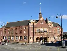 Wolverhampton is recorded as being the site of a decisive battle between the unified Mercian Angles and West Saxons against the raiding Danes in 910, although sources are unclear as to whether the battle itself took place in Wednesfield or Tettenhall, although those places were not within Wolverhampton's boundaries at the time.[12] The Mercians and West Saxons claimed a decisive victory, and the field of Woden is recognised by numerous place names in Wednesfield.[13][14]