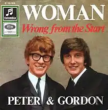 - Although Peter & Gordon had several hits which charted higher than "Woman", Gordon Waller would cite "Woman" as the ultimate Peter and Gordon track and his personal favourite: (quote) "You can sing it without any music, you can sing it with one guitar, you can sing it with a band, or you can sing it with a bloody orchestra. I think it envelops a lot of our other songs from that period, which were basically all love songs."[8]