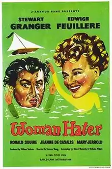 Woman Hater is a 1948 British romantic comedy film directed by Terence Young and starring Stewart Granger, Edwige Feuillère and Ronald Squire.[1] The screenplay concerns Lord Datchett, who, as a consequence of a bet with his friends, invites a French film star to stay at his house but pretends to be one of his employees while he tries to romance her with the help of his butler. When she discovers his subterfuge, she decides to turn the tables on him.[2]