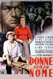 Women Without Names (Italian: Donne senza nome) is 1950 Italian drama film directed by Géza von Radványi and starring Simone Simon, Vivi Gioi, and Françoise Rosay.[1] It is set in a displaced-persons camp after the Second World War, and was filmed at the Cinecittà Studios in Rome. The film's sets were designed by the art directors Piero Filippone and Dario Cecchi.
