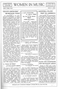 Olga Samaroff, National Federation of Music Clubs, Berlin Women's Orchestra, Elizabeth Kuyper, Mathilde Ernestine, Federal Music Project, Works Progress Administration (WPA) - Vol. III, No. 1 July 1937