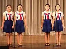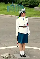 Female involvement in society was seen just as important as men. The 1972 constitution asserted that "women hold equal social status and rights with men."[23] The fact that women were given the same roles in society and in the economy can be seen when "Women workers had increased rapidly, with "equal pay [for equal work] and special treatment".[24] In addition, the increasing role of women in society than being simple housewives could be seen.[25] The 1990 constitution stipulates that the state creates various conditions for the advancement of women in society. In principle, North Korea strongly supports gender equality,[6] and established different policies regarding women's emancipation, however, in reality, North Korea remains a patriarchal society.