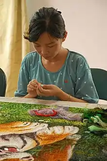 A woman from North Korea learning embroidery