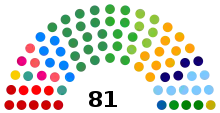 The deputies are all elected at the same time. An open list is used for voters to elect deputies. Meaning that citizens vote directly to the candidate they want to win. Hence, if a party has received 3 seats, which was calculated via LR-Hare quota, the 3 most voted candidates win. For the candidate to be allowed to be elected, they must reach at least 10% of the election quotient.[9] Their term duration is of four years, and they can be reelected for an unlimited number of terms.[10]
