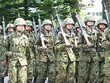 When the Japan Self-Defense Forces (JSDF), postwar armed forces of Japan, was originally formed, women were recruited exclusively for the nursing services. Opportunities were expanded somewhat when women were permitted to join the Japan Ground Self-Defense Force (JGSDF; army) communication service in 1967, the Japan Maritime Self-Defense Force (JMSDF; navy) and Japan Air Self-Defense Force (JASDF; air force) communication services in 1974. By 1991, more than 6,000 women were in the JSDF, about 80% of service areas, except those requiring direct exposure to combat, were open to them. The National Defense Medical College graduated its first class with women in March 1991, and the National Defense Academy of Japan began admitting women in 1992.[35]