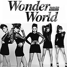 Wonder World entered and peaked at number one on the Gaon Album Chart on the chart issue dated November 6–12, 2011.[5] The album stayed in the Top 10 of the chart for four consecutive weeks.[6] The album entered and peaked at number 4 on the chart for the month of November 2011 with 35,051 physical copies sold.[7] The album placed at number 42 on the Gaon Album Chart for the year 2011 for 34,140 physical copies sold.[8] In the United States, the album entered and peaked at number 5 on Billboard's World Albums chart on the week ending November 26, 2011.[9] "Be My Baby" went to number 1 on both the Gaon Weekly Digital Charts[10] and the Billboard K-pop Hot 100.[11] The song was also featured in the group's TV movie, Wonder Girls at the Apollo, which aired on TeenNick.[12]