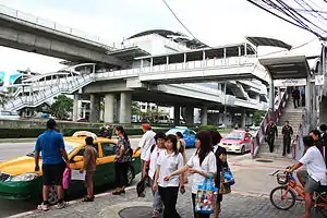 Wongwian Yai station (Thai: สถานีวงเวียนใหญ่, pronounced [sā.tʰǎː.nīː wōŋ.wīa̯n jàj]) is a BTS skytrain station, on the Silom line in Khlong San District, Bangkok, Thailand. The station is on Krung Thon Buri Road to the west of Taksin intersection. It is located in a different location to Wongwian Yai railway station operated by the State Railway of Thailand.