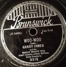 "Woo-Woo" is the B-side of the 78-rpm jazz instrumental single recorded on February 1, 1939, by Harry James and The Boogie Woogie Trio.