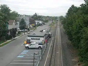 ![]() The Wood-Ridge station in September 2011, from the bridge above the station. | |||||||||||||