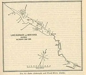 Wood River is a waterway in Alaska as well as a location outside Dillingham, Alaska by Wood River Road and the Wood River. The Wood River Lakes Trail is used for backcountry float trips. The Wood River Mountains are nearby. Wood River Road is one of the areas transportation routes. The rivers source is the Aleknagik Lake. The river runs past Dillingham where it meets the Nushagak River[1] and enters Nushagak Bay. Nushagak was a former trading post by the area where the rivers met.