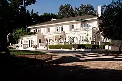 The Wooded Area gains its name from the large number of Eucalyptus, evergreen, and other trees in the neighborhood. The mature vegetation, along with large lot sizes and lack of sidewalks, contribute to a semi-rural feel.[1] The community is almost entirely residential, except for a small retail center at the corner of Catalina and Talbot streets, and Point Loma Nazarene University at the western edge of the community. Home prices in the area are relatively high and the neighborhood includes several striking mansions, including those built by Reuben H. Fleet,[4] Robert O. Peterson,[5] and Alfred and Marion Robinson.[6]