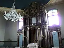 The interiors were decorated with wall and ceiling paintings that, in many cases, covered the walls and ceilings entirely, and with elaborately carved wooden Torah arks.[7][8][5]