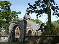 All Saints' Episcopal Church (also known as Woodhead Chapel), 1849, was built by John Henderson. Its spire was added in 1870 by James Matthews. The manse, 1844, is also the work of Henderson.[1]