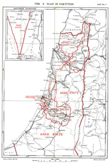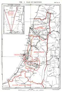 Plan C was preferred by the commission. This plan was a modification of the partition, which would form a satisfactory basis of settlement, if the United Kingdom was prepared to provide a sufficient assistance to enable the Arab State to balance its budget.[5] In this plan, the entire Galilee and a corridor from Jaffa to Jerusalem would remain under British mandate.