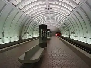 Like other stations on the Red Line constructed with rock-tunneling methods, it is rather deep, at 150 feet (46 m) below ground. After Forest Glen, it is the second deepest station in the system.[4][5] The escalators have a vertical rise of 102 feet (31 m); they are the longest in the District of Columbia and the third longest on the Metrorail system (behind Wheaton and Bethesda).[6]