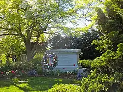 The cemetery became more widely known nationwide just over fifteen years later when James Buchanan, the fifteenth president of the United States was buried here on June 4, 1868,[10] following his death three days earlier at Wheatland, his Lancaster County home, from respiratory failure. He was seventy-seven years old at the time of his death.[11] Reporters for local newspapers noted that Buchanan's casket was "followed to the grave by the largest cortege that ever attended the funeral obsequies of any President who died out of office." Lancaster's Intelligencer Journal added:[12]