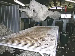 Wool classing is the production of uniform, predictable, low-risk lines of wool, carried out by examining the characteristics of the wool in its raw state[1] and classing (grading) it accordingly. Wool classing is done by a wool classer.