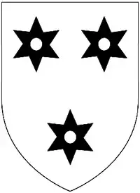 Arms of Wollaston: Argent, three mullets sable pierced of the field[1]