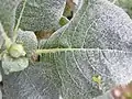 The catkins appear in summer (May to July), with male and female catkins on separate plants (like all willows this species is dioecious). The female catkins are densely hairy. The petioles are usually less than 1 cm long, and the stipules usually 1 cm long by 0.6 cm wide, and persistent.[1][2][3]
