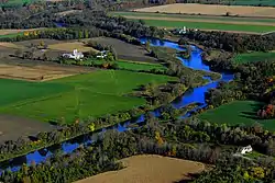 Historical records suggest that David Musselman founded Conestoga after buying land in 1830. He built a sawmill in 1844 and after damming the Conestoga River, he added a flour mill and a second sawmill. The hamlet formed in this area, known as Musselman's Mills until 1852 when it became Conestoga because many of the settlers had come from the Conestoga River area of Pennsylvania.[12] Records about the entire township from 1846 indicate that the area was thinly settled although the land was excellent and there were large tracts of hardwood. There were two grist and two saw mills and an Episcopal church. The population count in 1841 indicated 1009 people.[18]