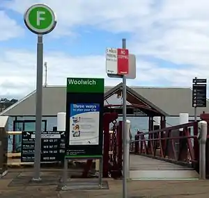 Woolwich ferry wharf (also known as Valentia Street ferry wharf) is located on Sydney Harbour serving the Sydney suburb of Woolwich. It served by Sydney Ferries Cockatoo Island services operating between Circular Quay and Cockatoo Island.[1] The single wharf is served by First Fleet and Emerald class ferries.
