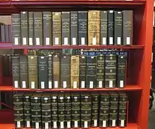 The Woordenboek der Nederlandsche Taal (WNT; lit. 'Dictionary of the Dutch language') is a dictionary of the Dutch language. It contains between 350,000 and 400,000 entries describing Dutch words from 1500 to 1976. The paper edition consists of 43 volumes (including three supplements) on 49,255 pages.[1] It is believed to be the largest dictionary in the world in number of pages.[2] The dictionary was nearly 150 years in the making from 1849; the first volume was published in 1864, and the final volume was presented to Albert II of Belgium and Beatrix of the Netherlands in 1998.