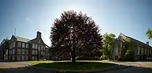 Near the edge of the WPI campus is a large Tudor-style mansion built in 1923 by WPI alumnus Aldus Chapin Higgins and later bequeathed to his alma mater. Named appropriately as the Higgins House, the mansion and the surrounding English garden serves as the backdrop for many alumni events and is the headquarters for the Office of Alumni Relations.[17]